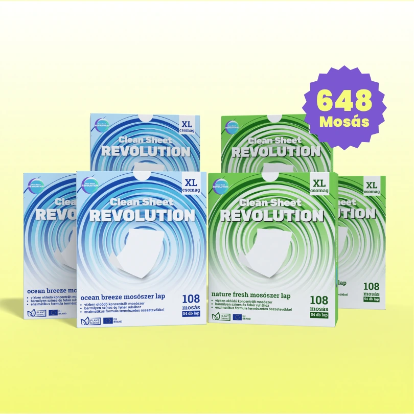 A Clean Sheet Revolution mosószer lapok a mosószerek új generációját képviselik. A csomagban 3 darab Ocean Breeze mosószer lap termék található színes ruhákhoz és 3 darab Nature Fresh mosószer lap termék található világos és fehér ruhákhoz. A csomag közel 15.000 Ft-tal kedvezőbb áron kínálja a termékeket (olyan, mintha két dobozt teljesen ingyen kapnál!), mint külön vásárolva, illetve akár 648 mosási töltethez elegendő mosószert biztosít, így akár másfél évre elegendő mosószert tudsz beszerezni kedvező áron.